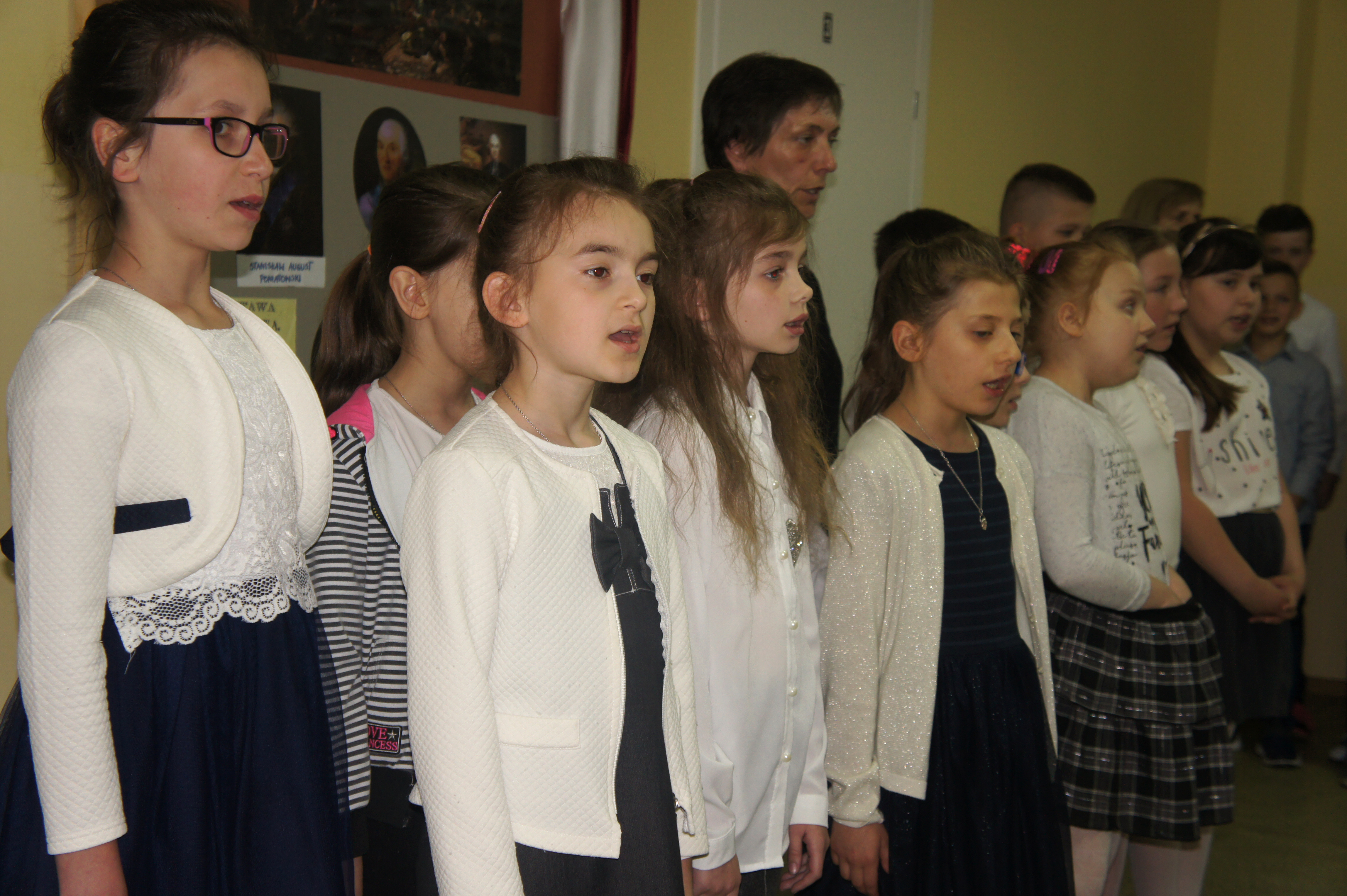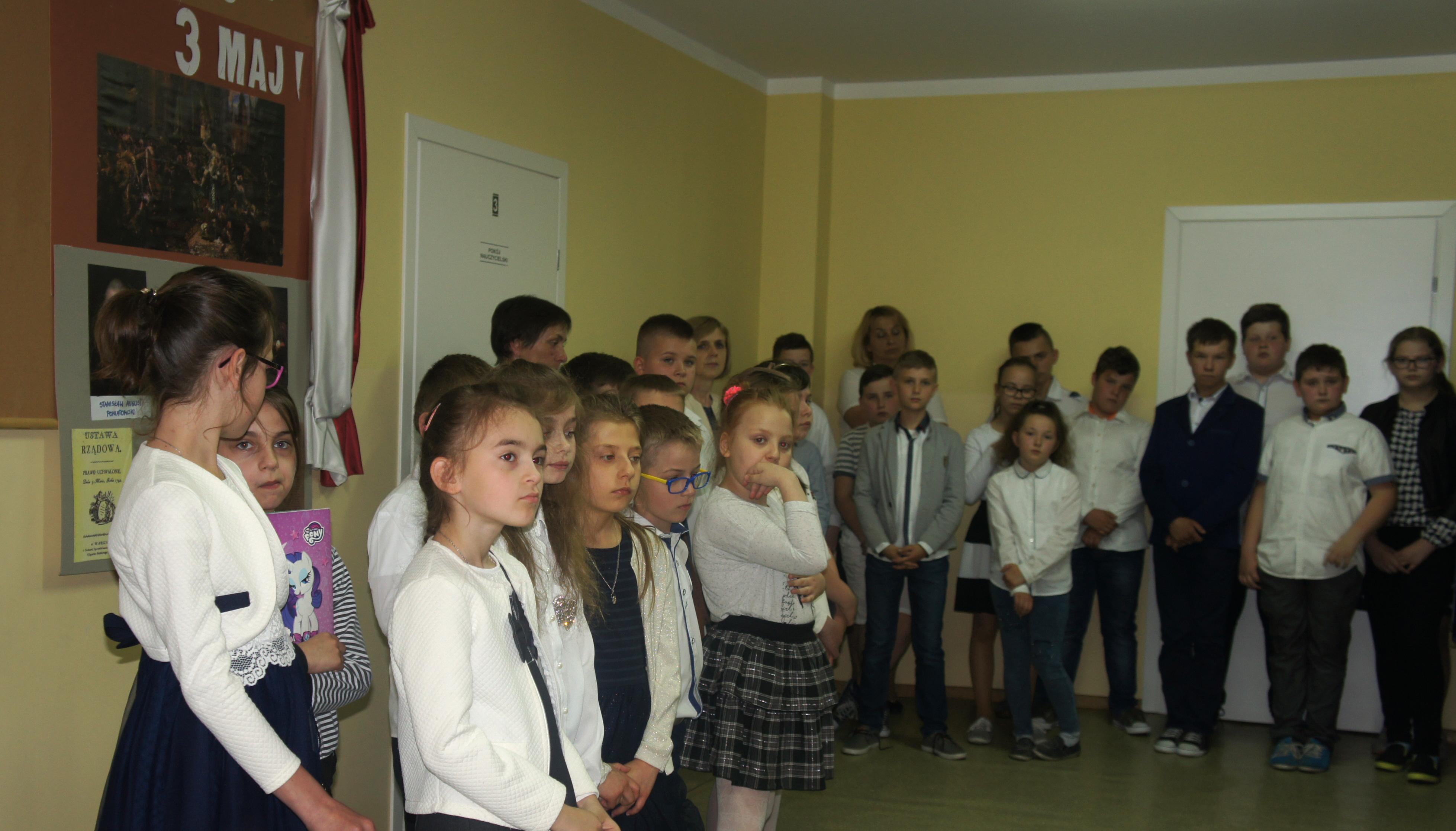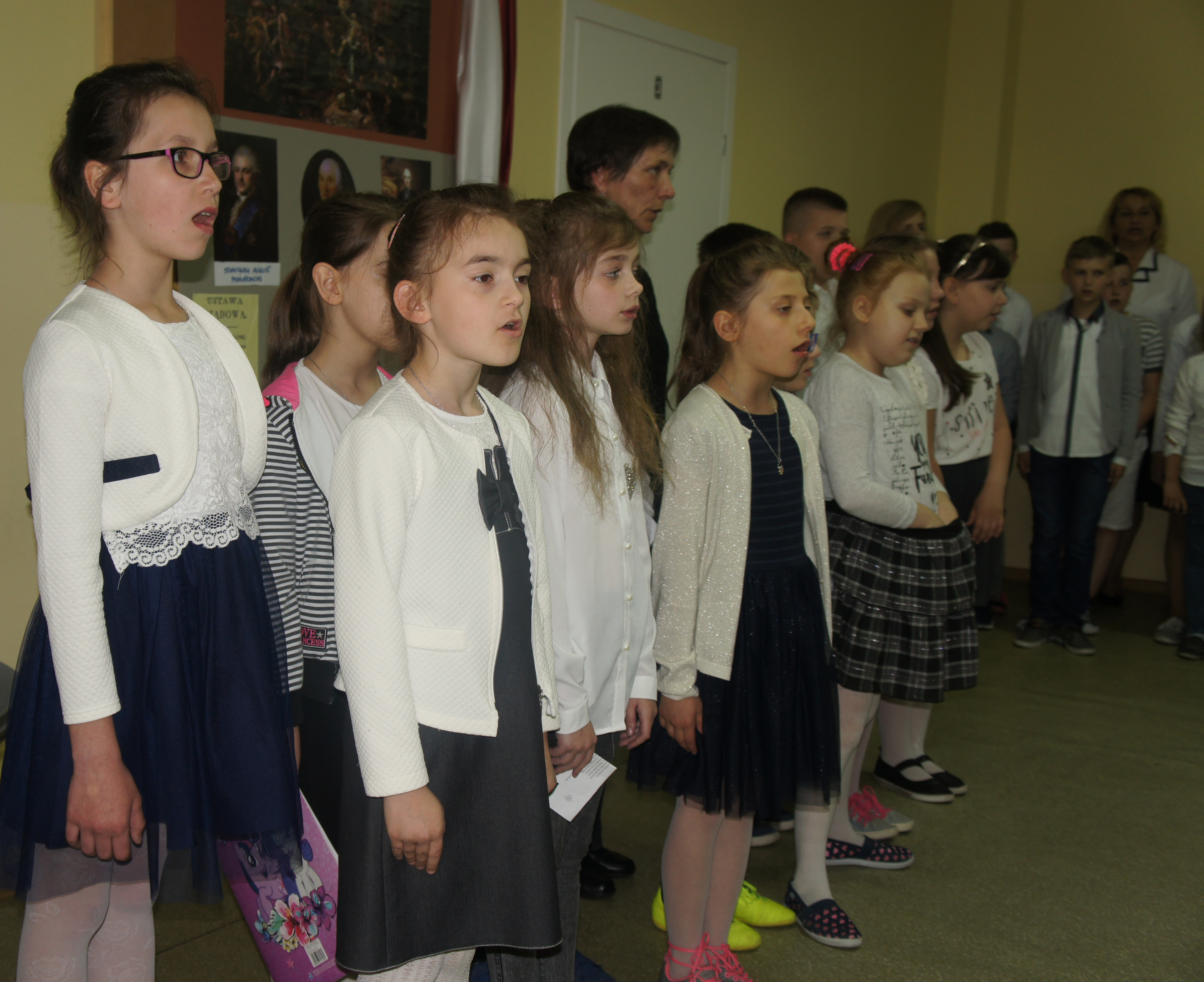 W rocznicę uchwalenia Konstytucji 3 Maja spotkaliśmy się na apelu, by wysłuchać części artystycznej, przygotowanej przez panie Elżbietę Pulkowską oraz Małgorzatę Duk, w wykonaniu klas 2 i 3. Recytowane wiersze przypomniały nam trudny okres dla naszego kraju w przededniu rozbiorów oraz nazwiska ludzi, którzy do końca próbowali ratować Polskę przed upadkiem.