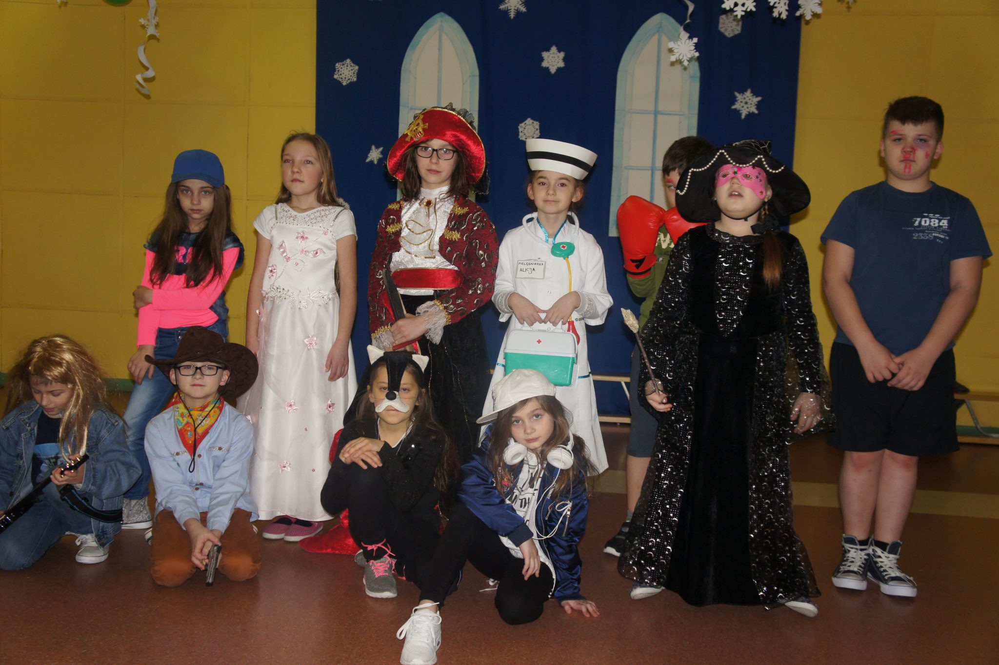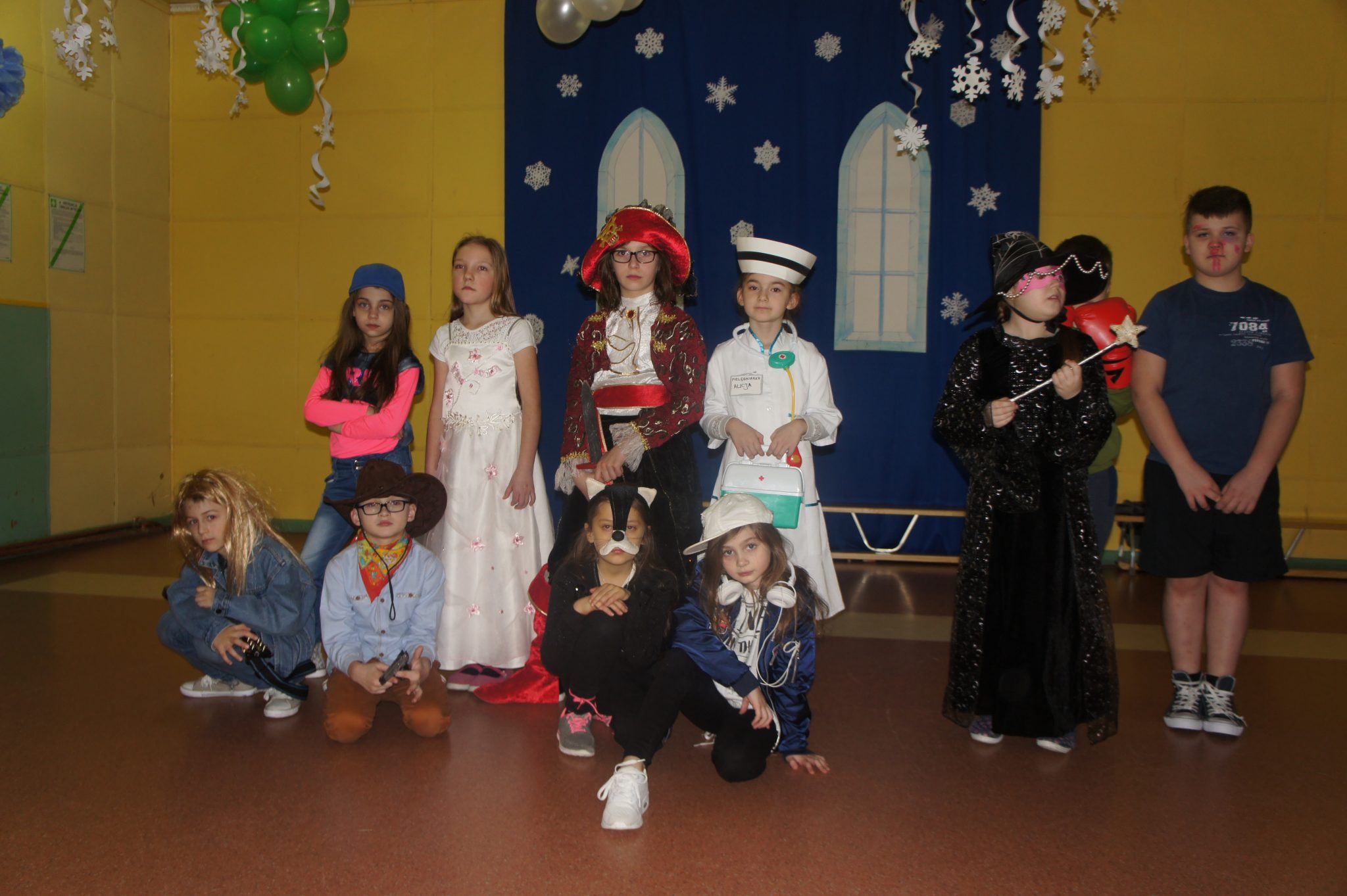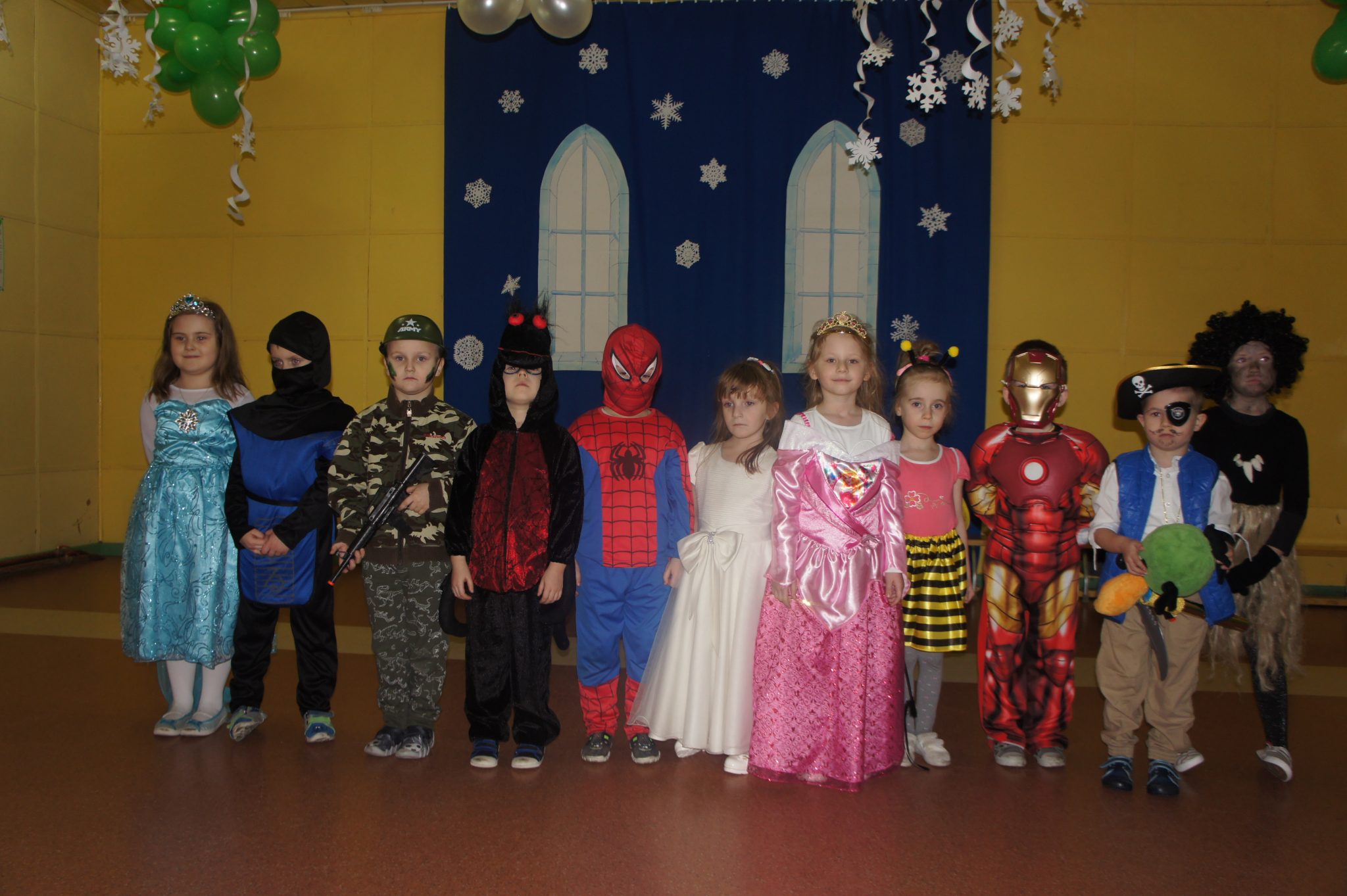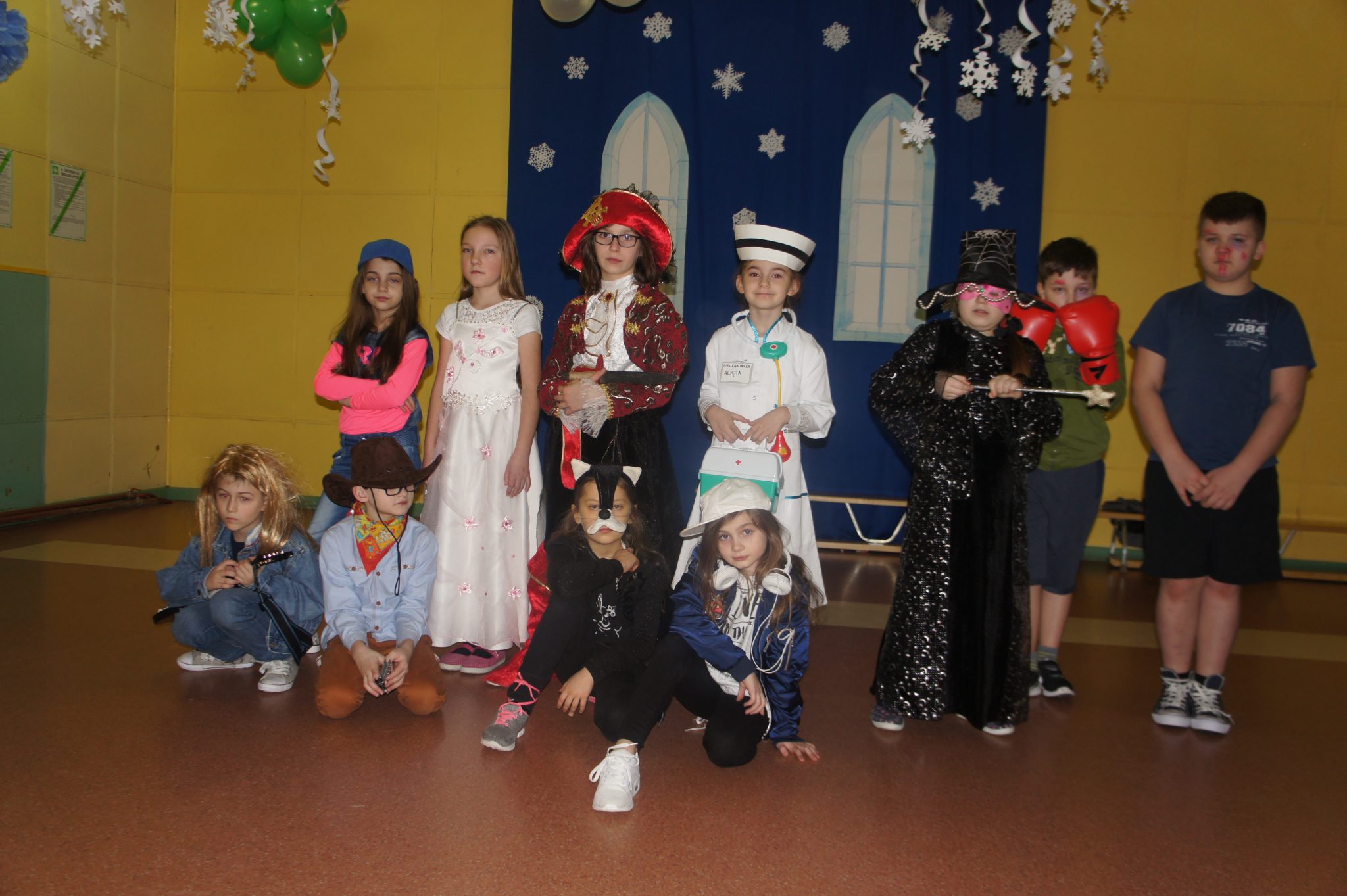 Pod koniec balu dokonaliśmy prezentacji strojów. Wśród księżniczek, wróżek, „super bohaterów” i innych bajkowych postaci, znalazły się również wcielenia ludzi wykonujących różne zawody, takie jak żołnierz, pielęgniarka, muzyk – gitarzysta czy bokser.