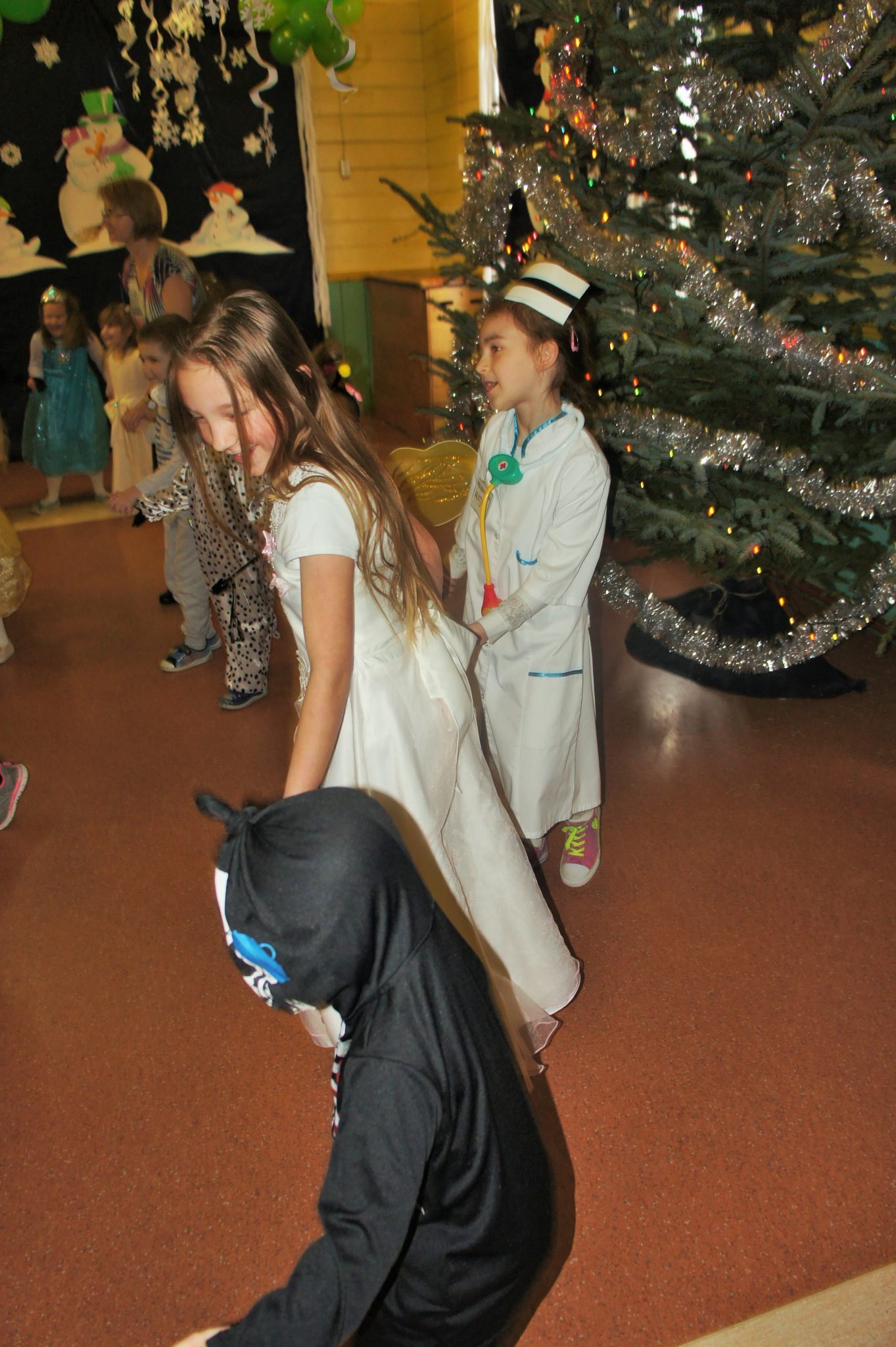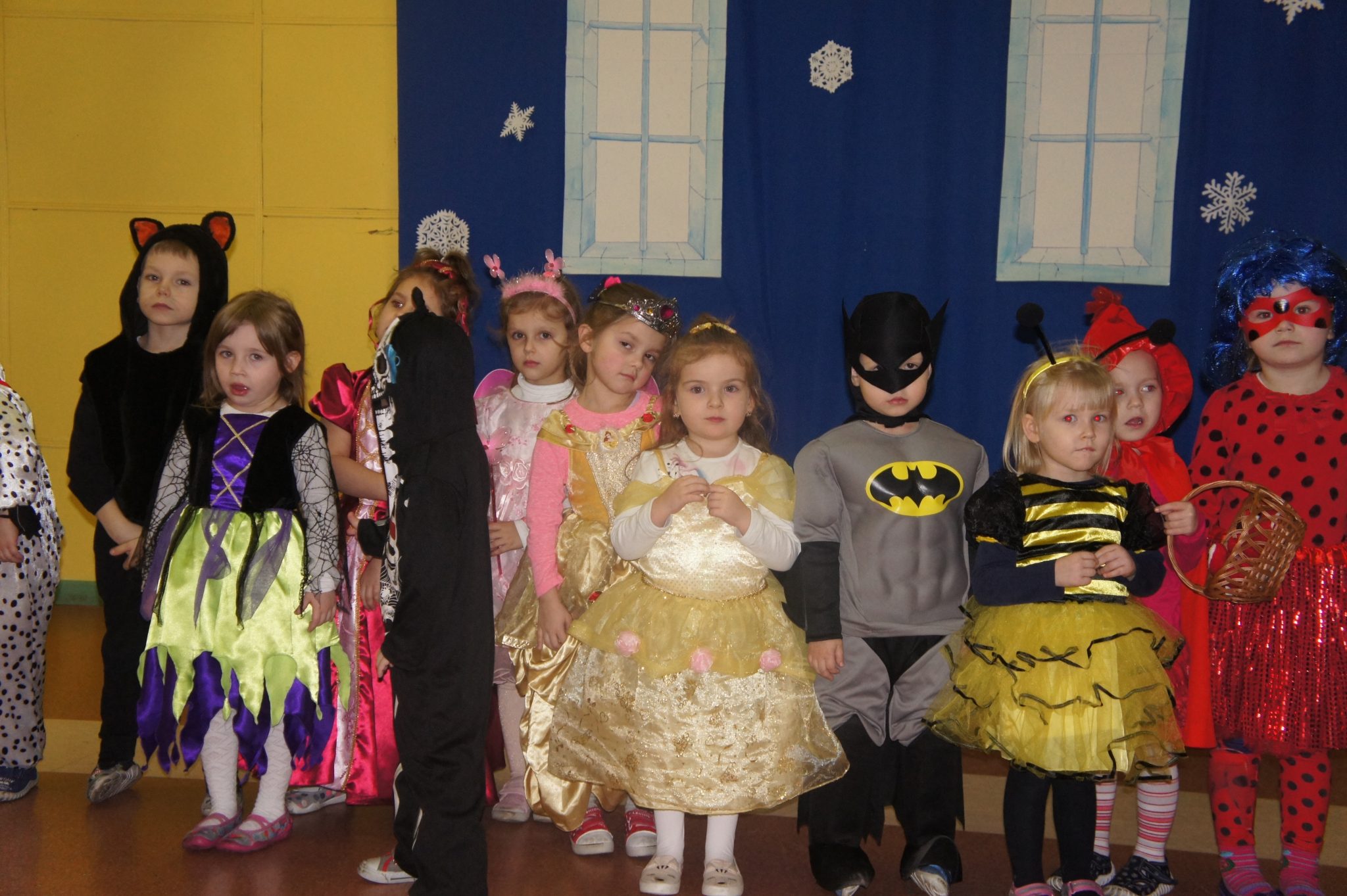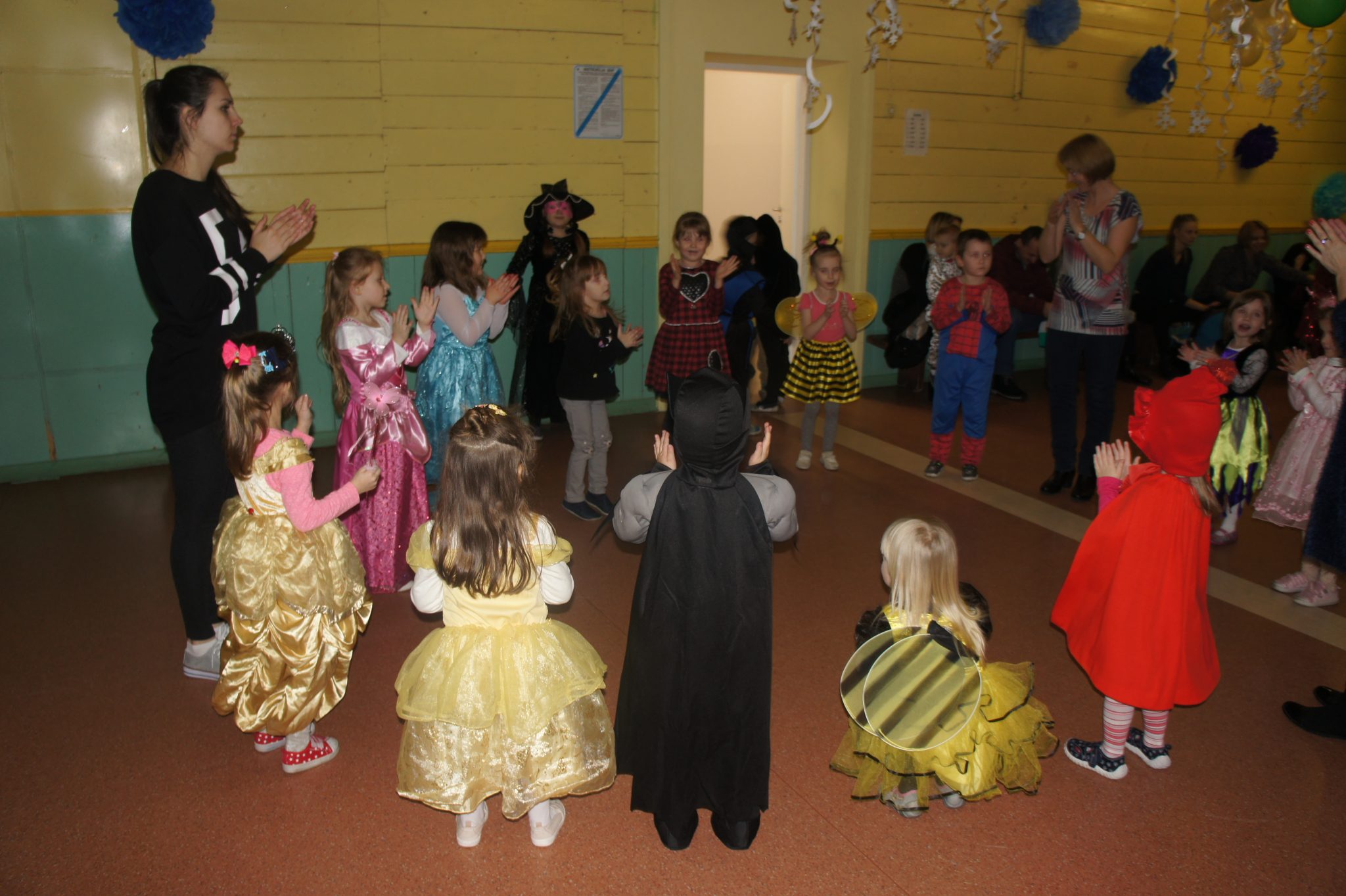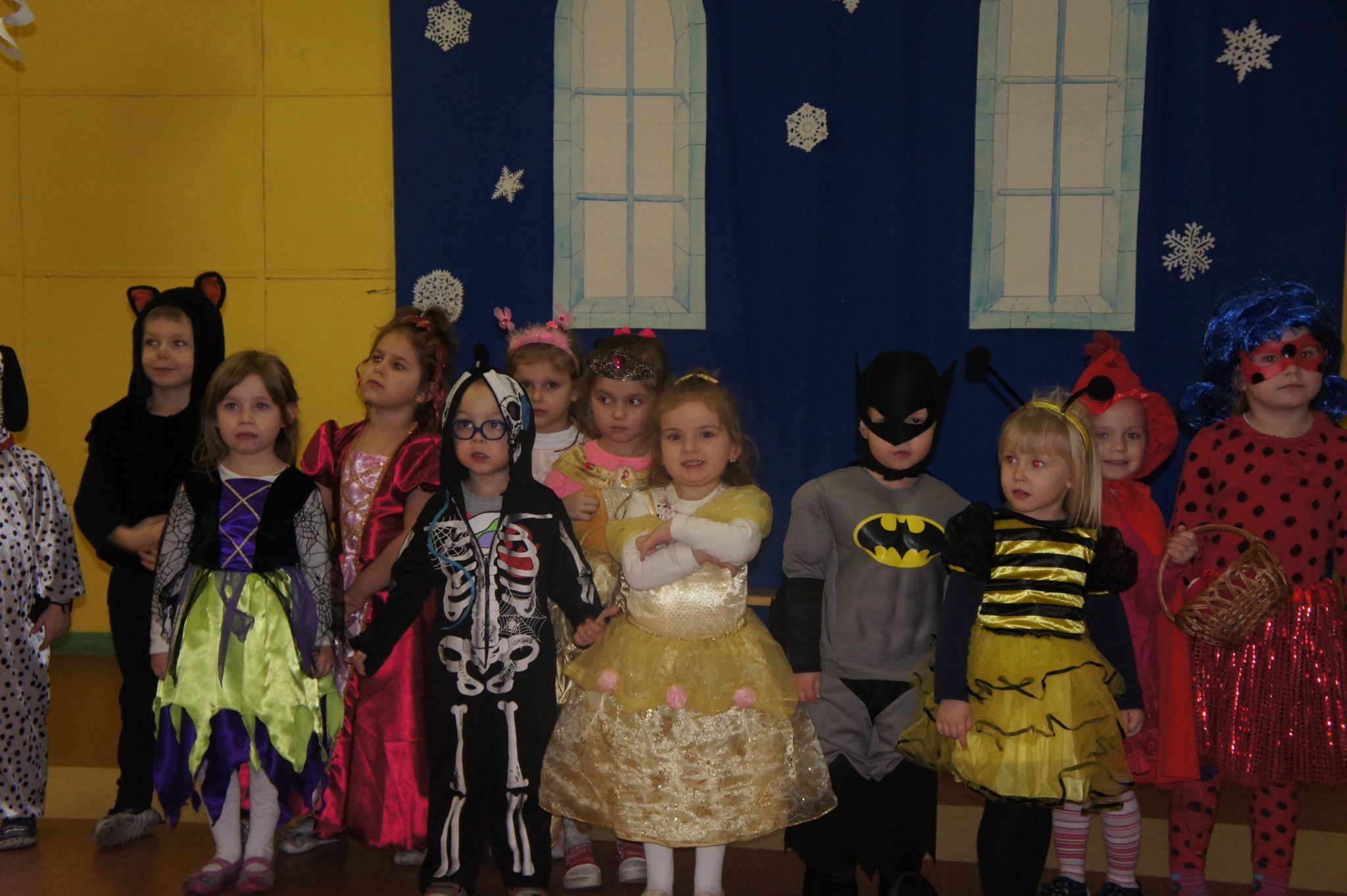 Pod koniec balu dokonaliśmy prezentacji strojów. Wśród księżniczek, wróżek, „super bohaterów” i innych bajkowych postaci, znalazły się również wcielenia ludzi wykonujących różne zawody, takie jak żołnierz, pielęgniarka, muzyk – gitarzysta czy bokser.